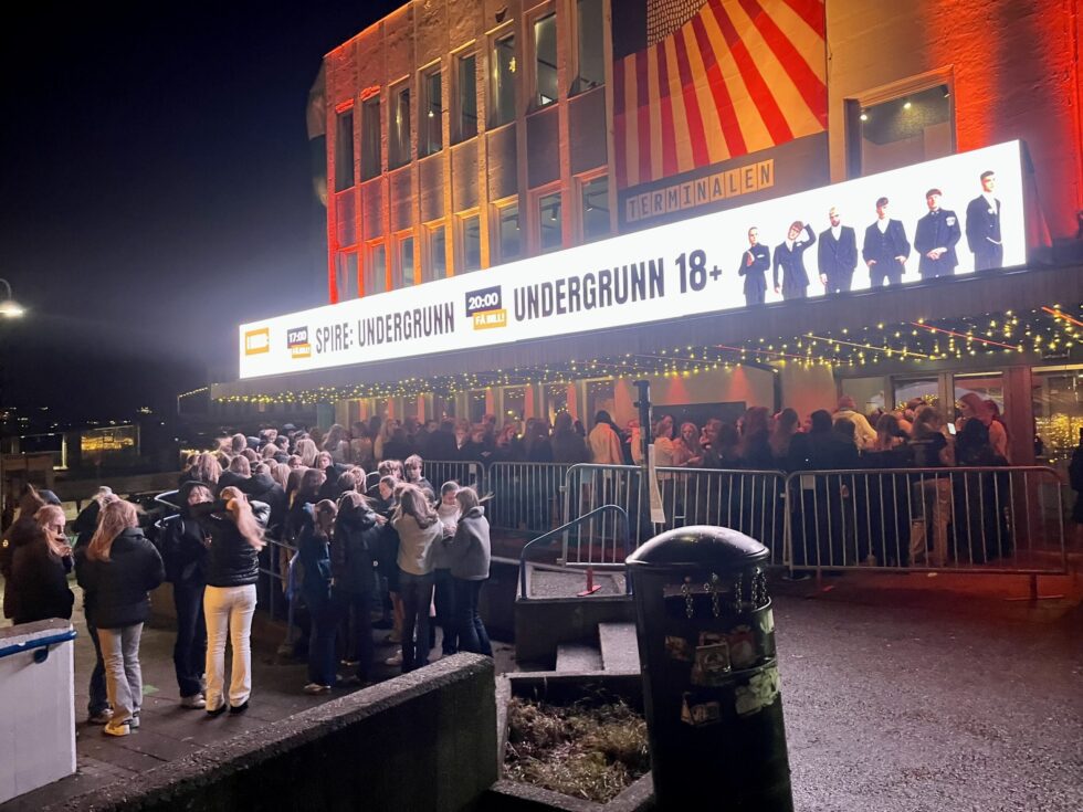 Det var lang kø utenfor Terminalen da dørene åpnet for Spire-konsert med rapgruppen Undergrunn fredag kveld.