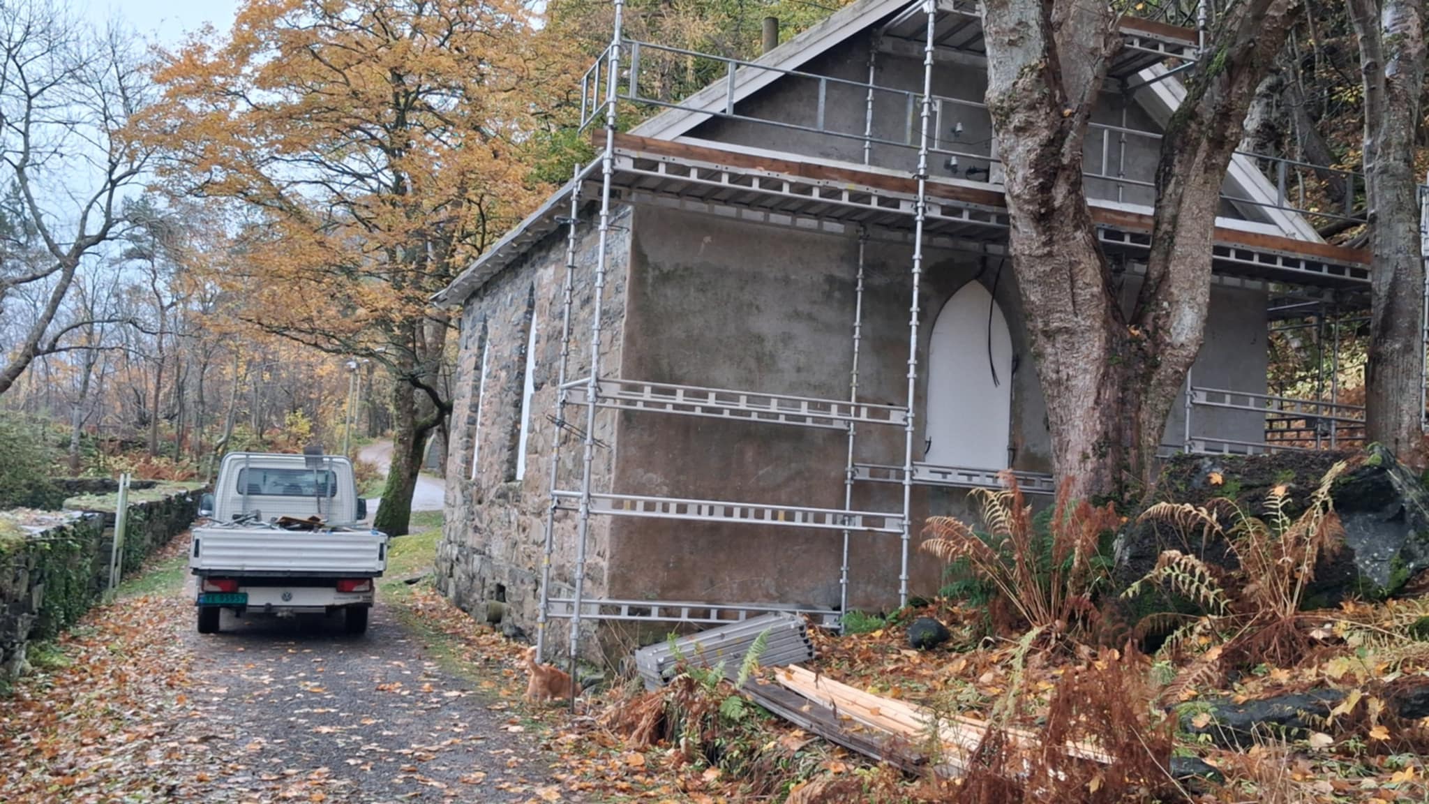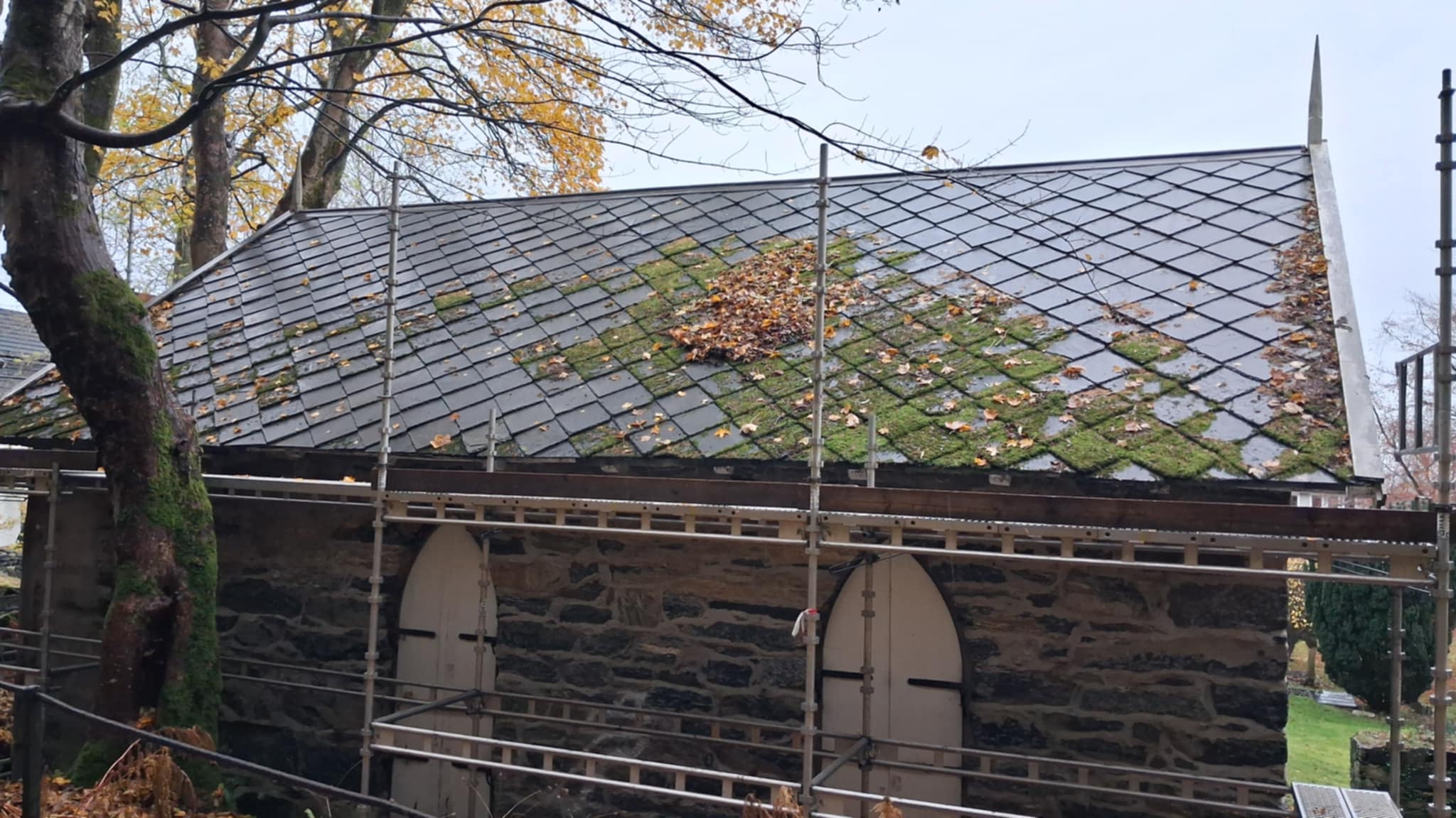 Ifølge våre opplysninger, er det Ålesund kirkelig fellesråd som er oppdragsgiver og Vidar Godø AS som fredag har begynt å sette opp stillas. Mandag starter arbeidet med å renovere taket på kapellet.