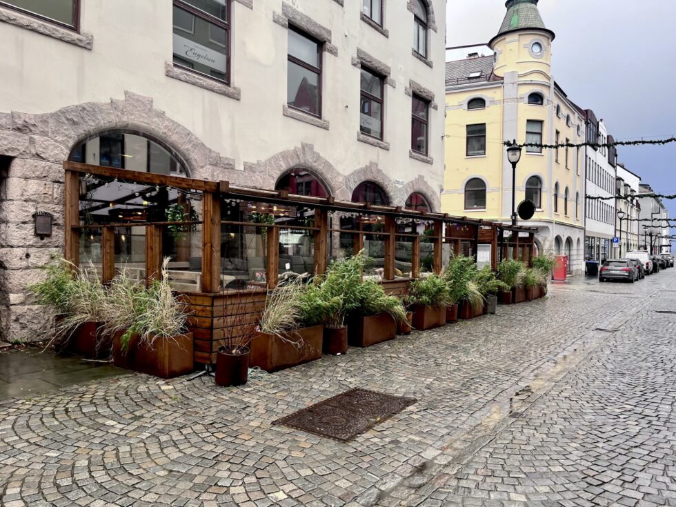 – Tidligere hadde vi tre parasoller. To ganger ble de ødelagt av kraftig vind i gaten. Hver parasoll kostet rundt 75 000 kroner per stykk. Da dette skjedde for andre gang, forsto vi at løsningen ikke var bærekraftig, forklarer han.