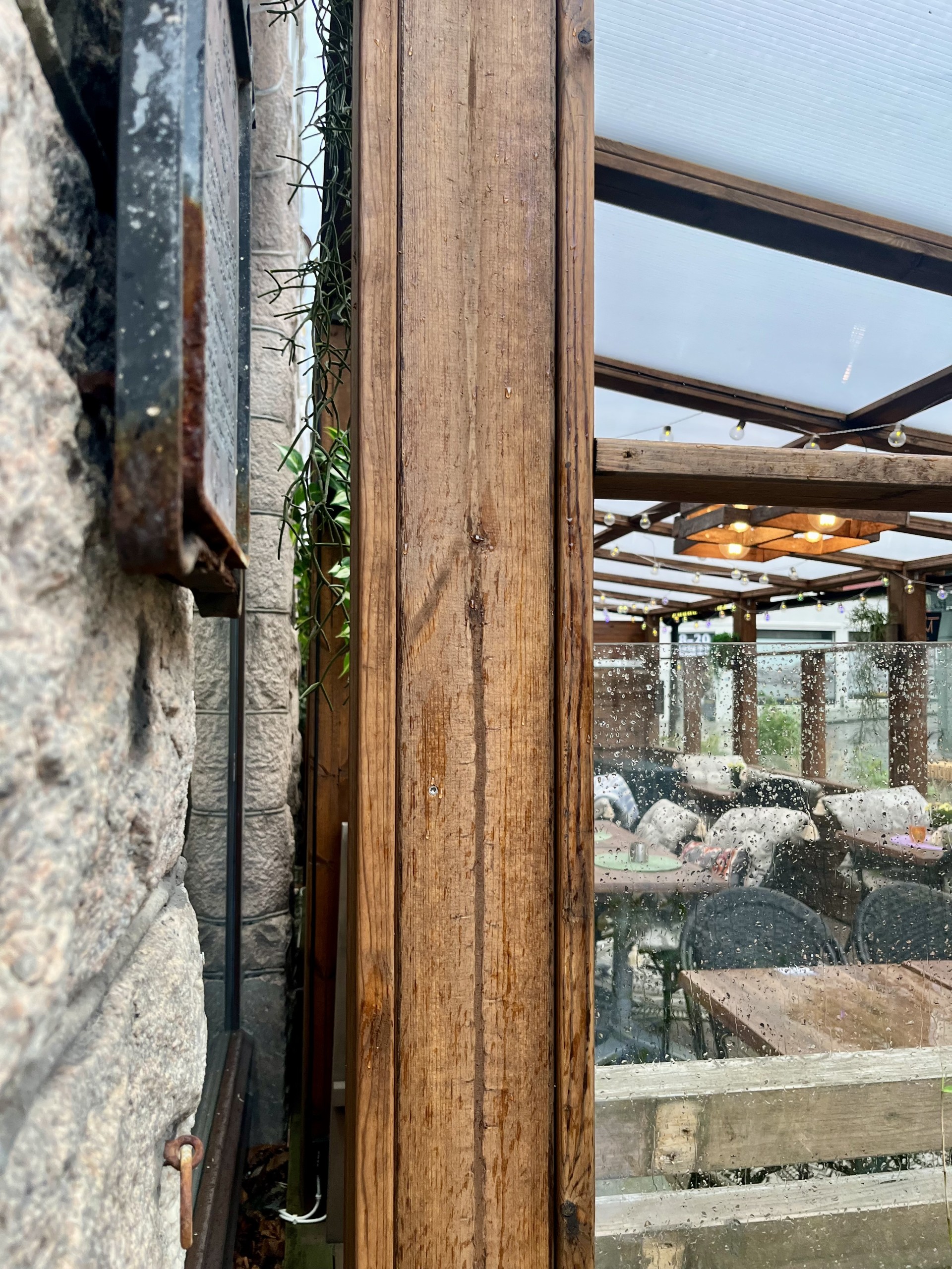 Løsningen ble derfor å fjerne parasollene og erstatte dem med en frittstående pergola.