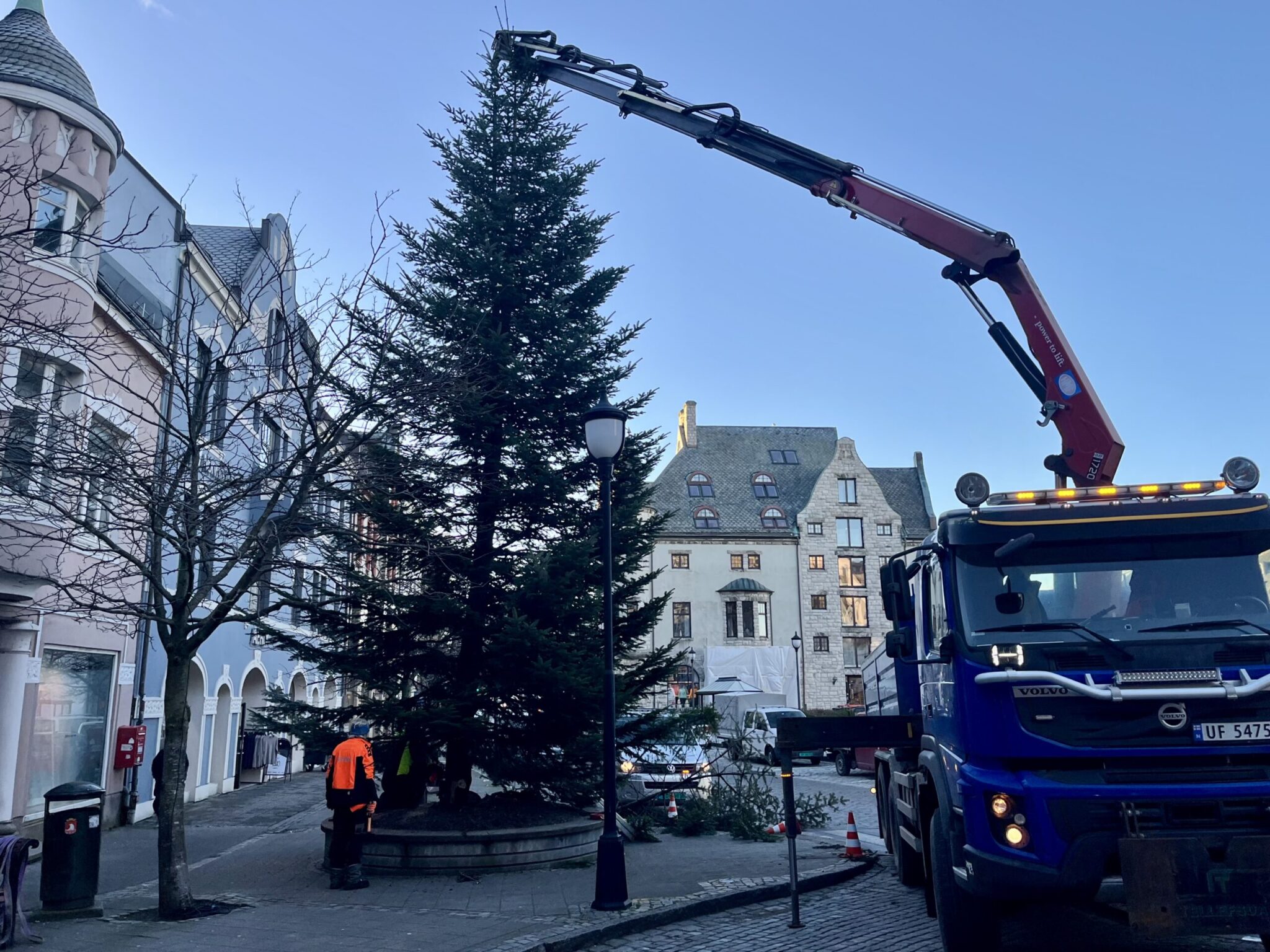 Årets juletre er på plass på St. Olavs plass, og det kommer i år fra Blindheim, nærmere bestemt Blindheimsveien 7.