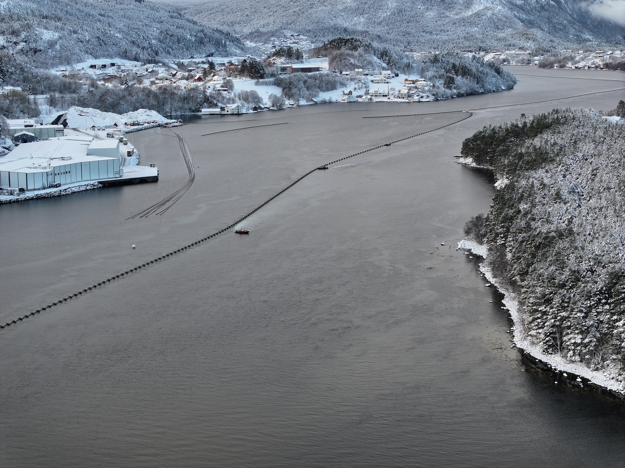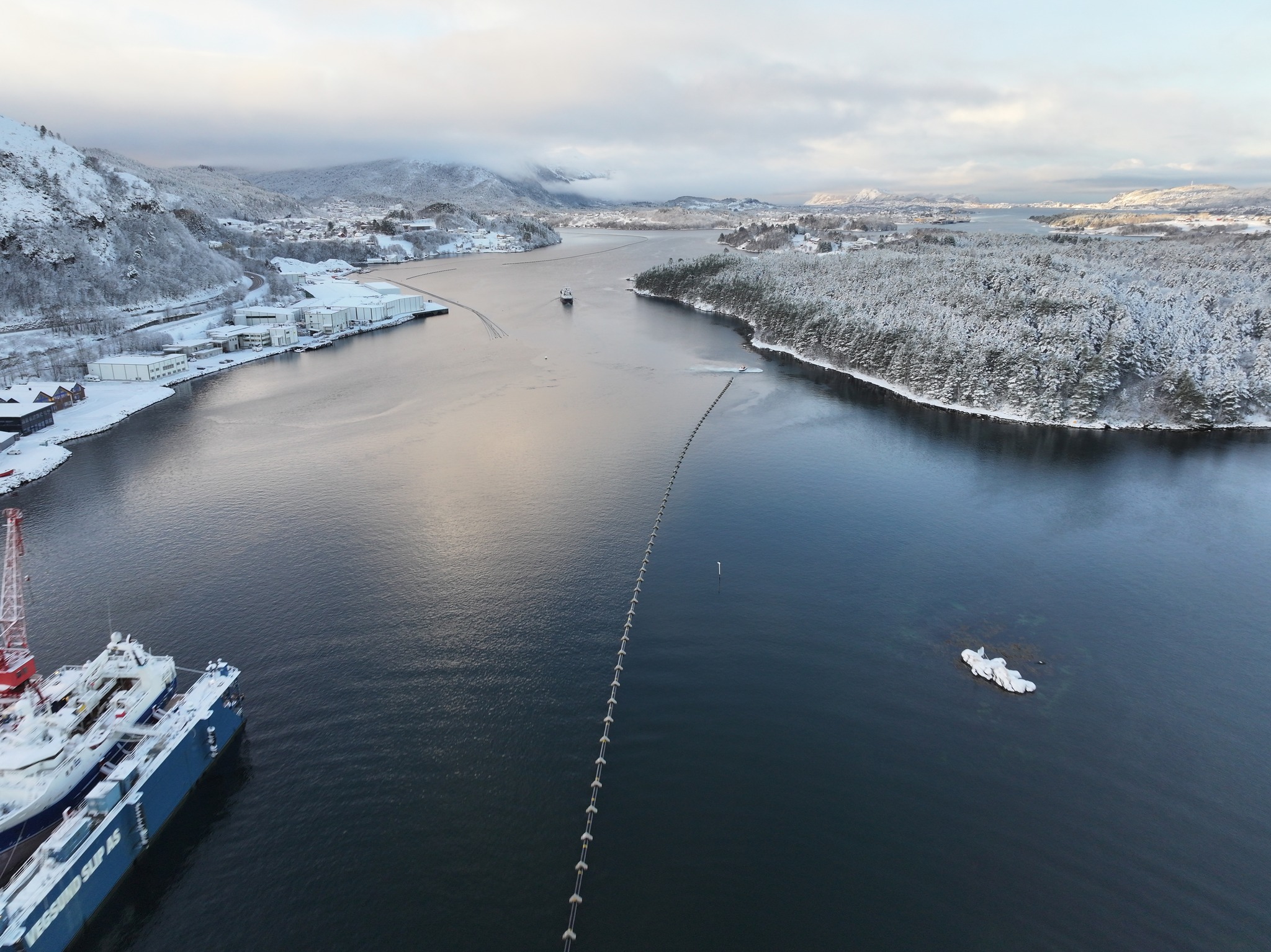 Torsdag ble den første sjøledningen lagt ut tvers over Vegsundvågen.