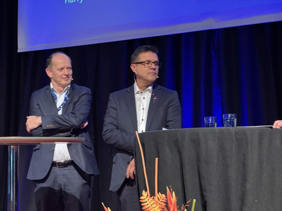 Stortingsrepresentantene Harry Valderhaug (KrF, til venstre) og Frank Sve (Frp) var enige om å prioritere arbeidet med ny E39 i tunnel forbi Spjelkavik-området. Men da er det én bestemt ting Valderhaug og KrF må slutte å tulle med, sa Frank Sve. Foto: Robin Røkke
