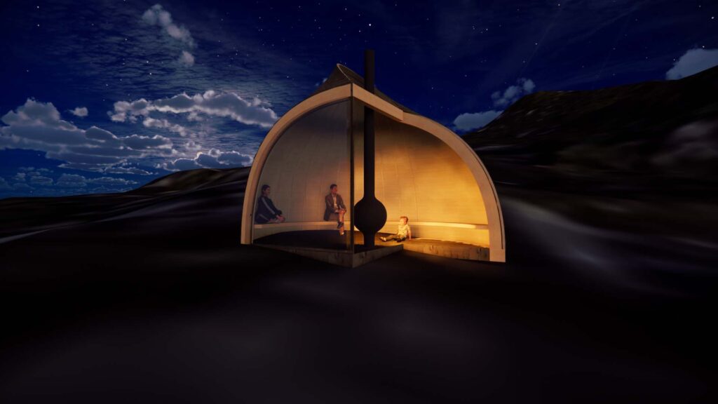 – Vi bestemte oss for når vi først skulle gjør dette så skulle vi gjør det ordentlig. Det er derfor kjekt at vi fikk anledning til å bruke midler til å få tegnet noe spektakulært og langt mer enn en vanlig gapahuk, legger hun til.