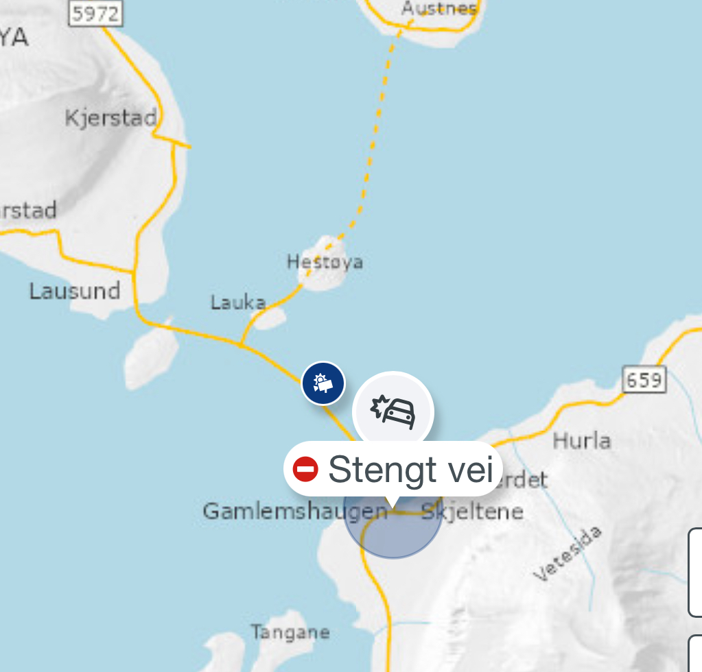 Lørdag formiddag rykket nødetatene ut til en trafikkulykke i krysset Hamsundvegen og lepsøybrua i Haram.
