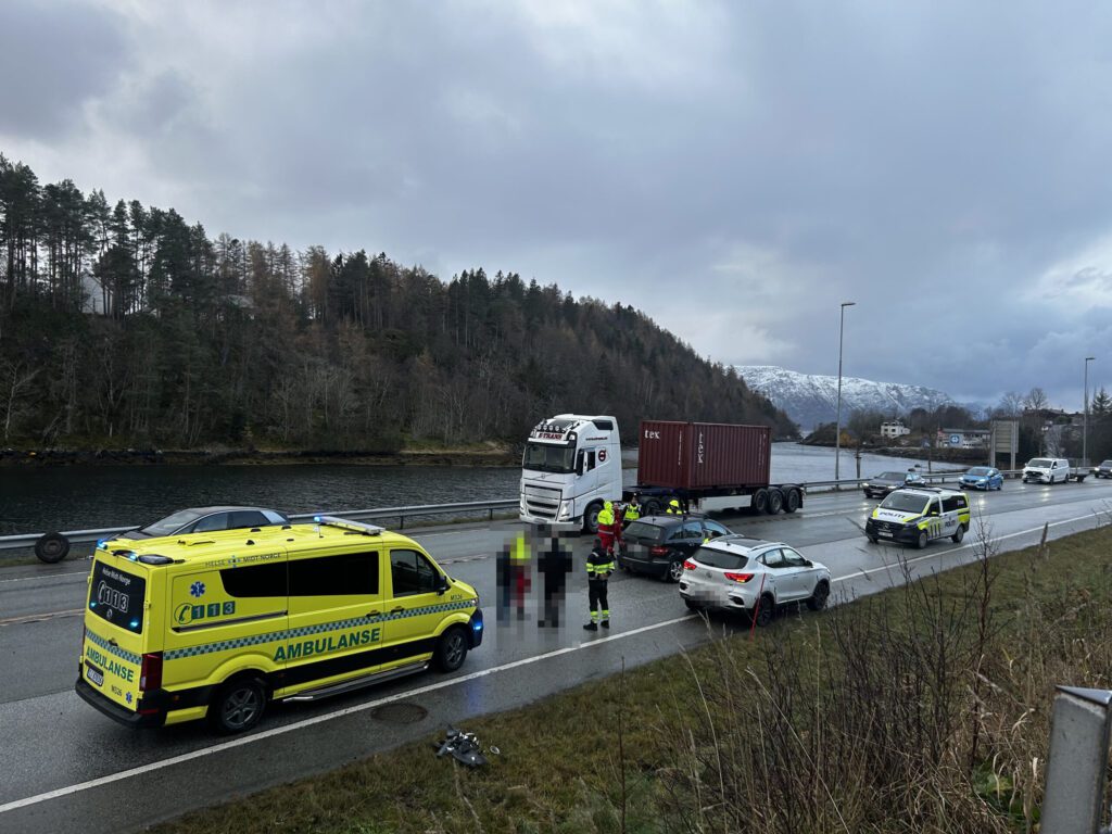 – Det tyder på at en av bilene har mistet et dekk, og dekket kan så ha truffet en bil som kom i motgående kjøreretning, opplyser Eivind Klokkersund kl. 13.58.