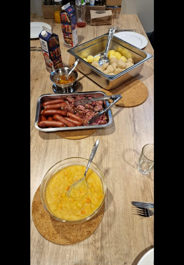 Torsdag spiste de potetball, forteller en fornøyd skipper på ei ferje på Sunnmøre. – Middagen var god, med store porsjoner, og det som blir til overs skal vi spise til kveldsmat, fortalte han meg. Maten kommer i store pakker, og mannskapet varmer maten i vannbad. For middagen er dagens høydepunkt. Han forteller at ansatte på hans ferje har klaget mye på maten tidligere, og at de nå er glade for den jobben regionleder Odd Reidar Ormåsen og Fjord1 har gjort for å forbedre maten.