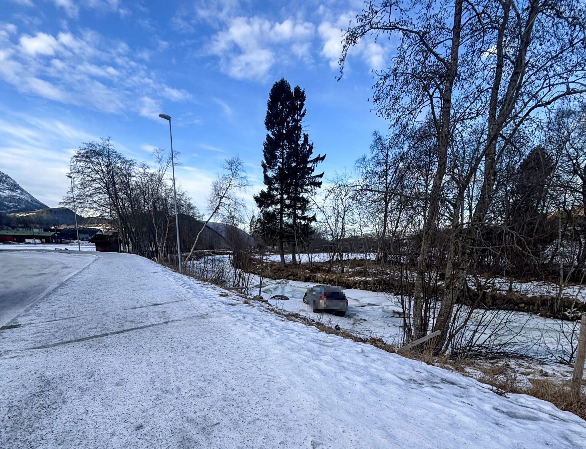 Bil på islagt elv