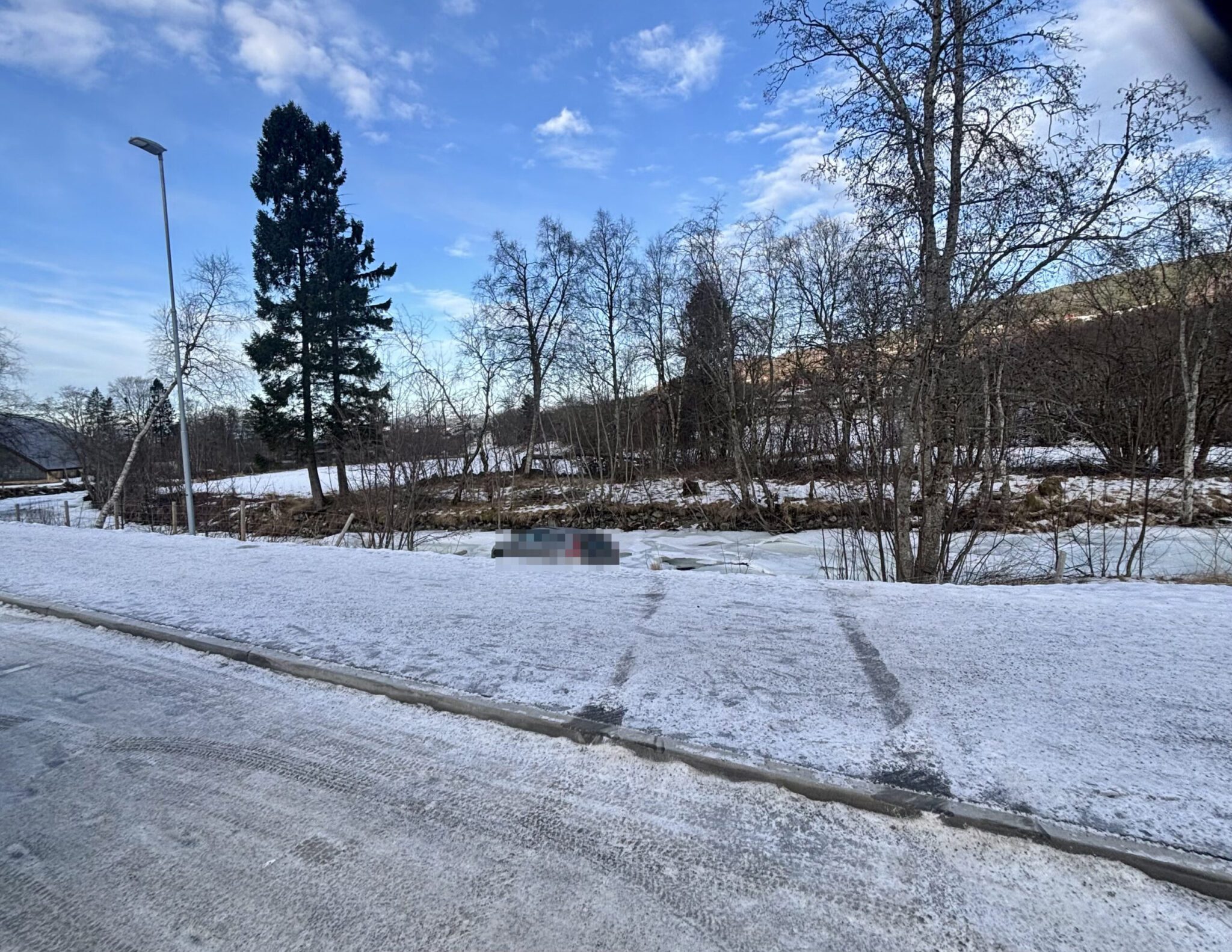 Politiet rykker ut for å undersøke omstendighetene rundt at det står en bil formentlig på isen i elva.