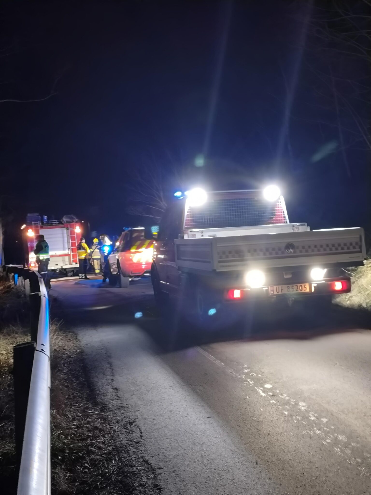 Brannvesenet er på stedet og opplyser klokken 06.04 at slokkearbeidet har hatt god effekt. Det er ikke meldt om brann i bygninger.