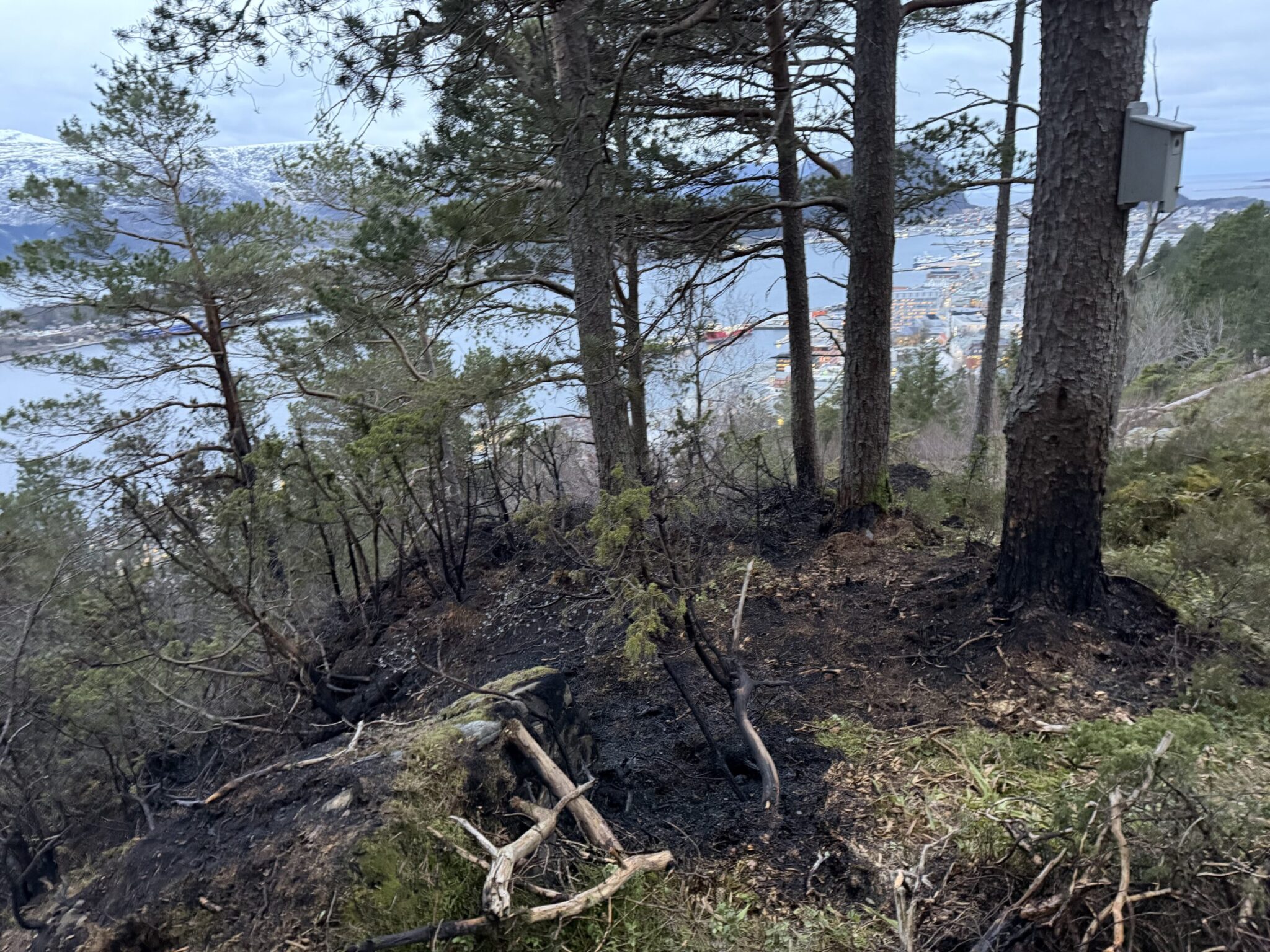 Nødetatene rykket tidlig tirsdag morgen ut til brann i terrenget på Aksla, i nærheten av Fjellstua. Meldingen kom klokken 05.54.