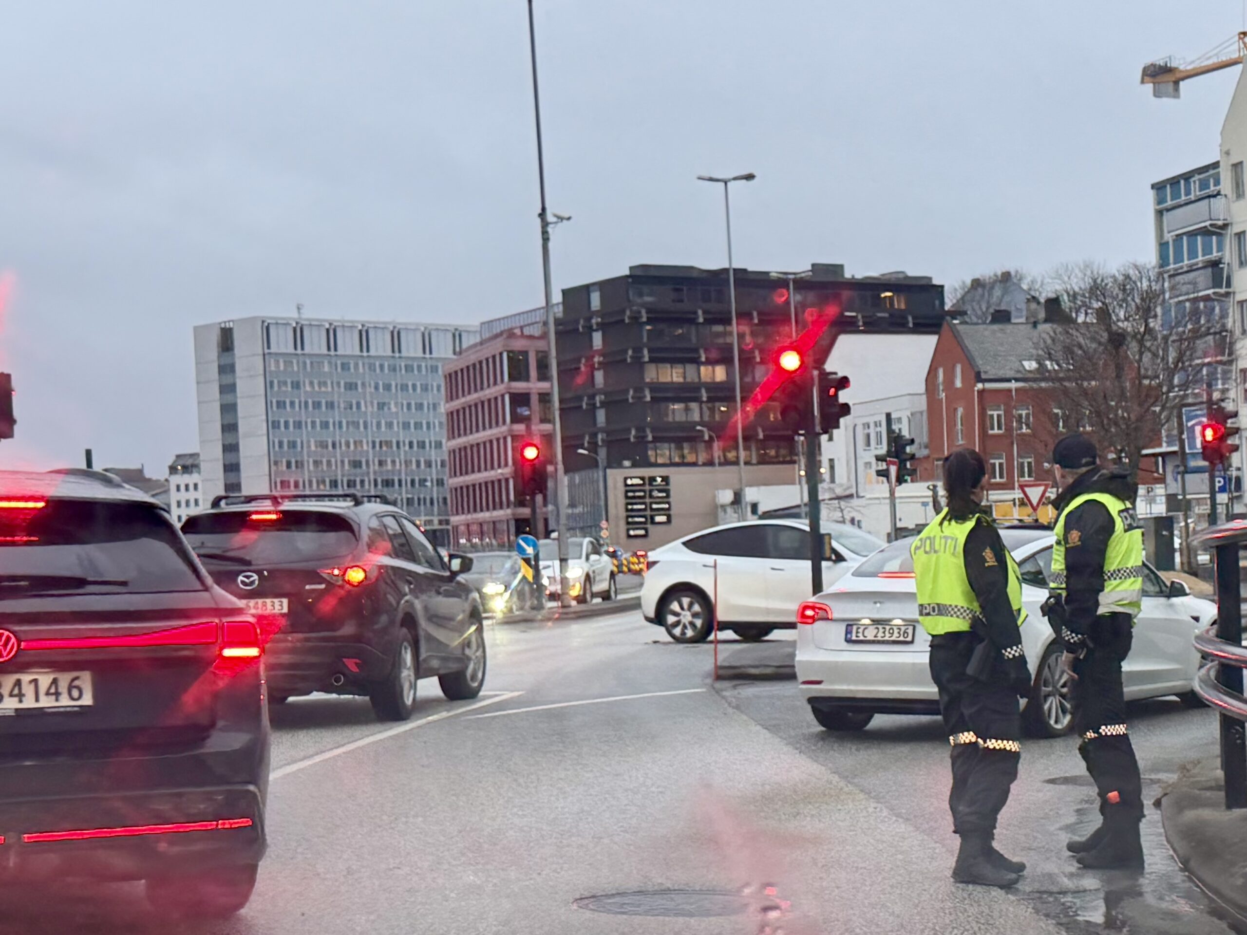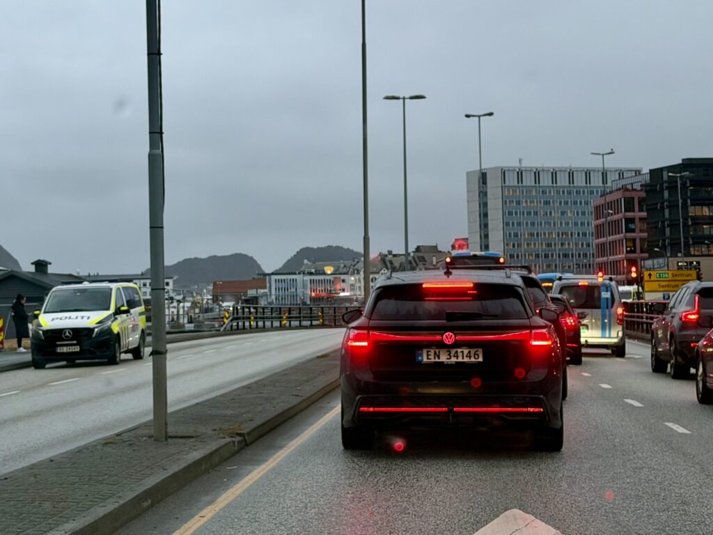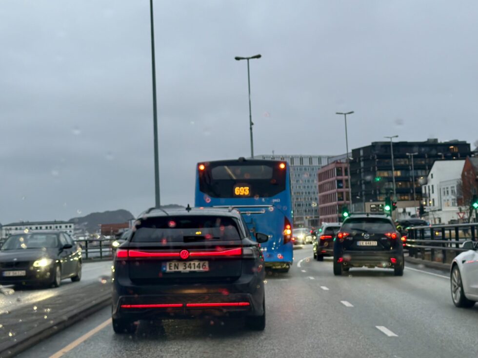 – En buss som står og blokkerer for trafikken ved Meierikaia. Politiet er på vei til stedet for å avhjelpe med trafikkavvikling, meldte politiet kl. 08.01.