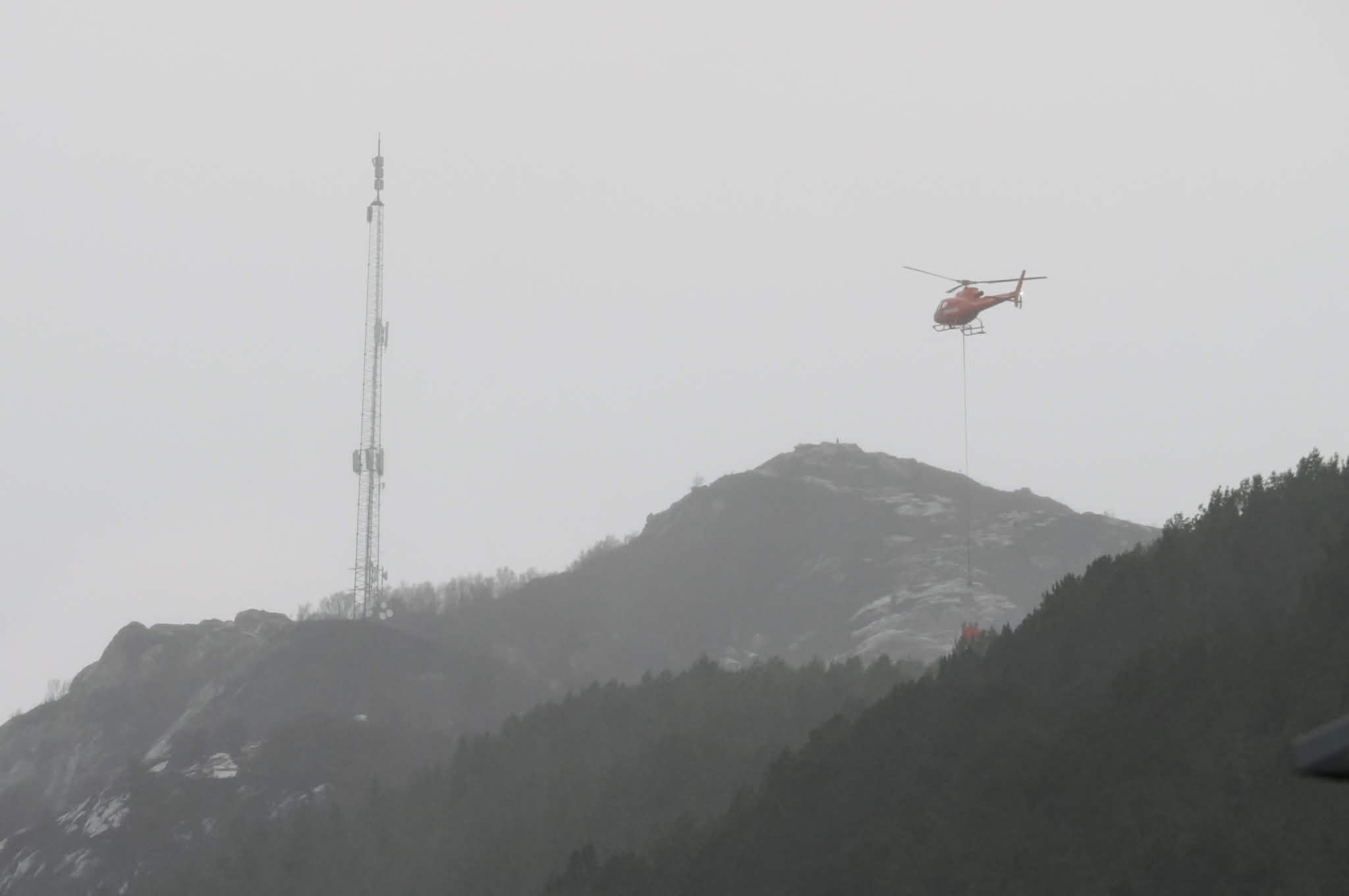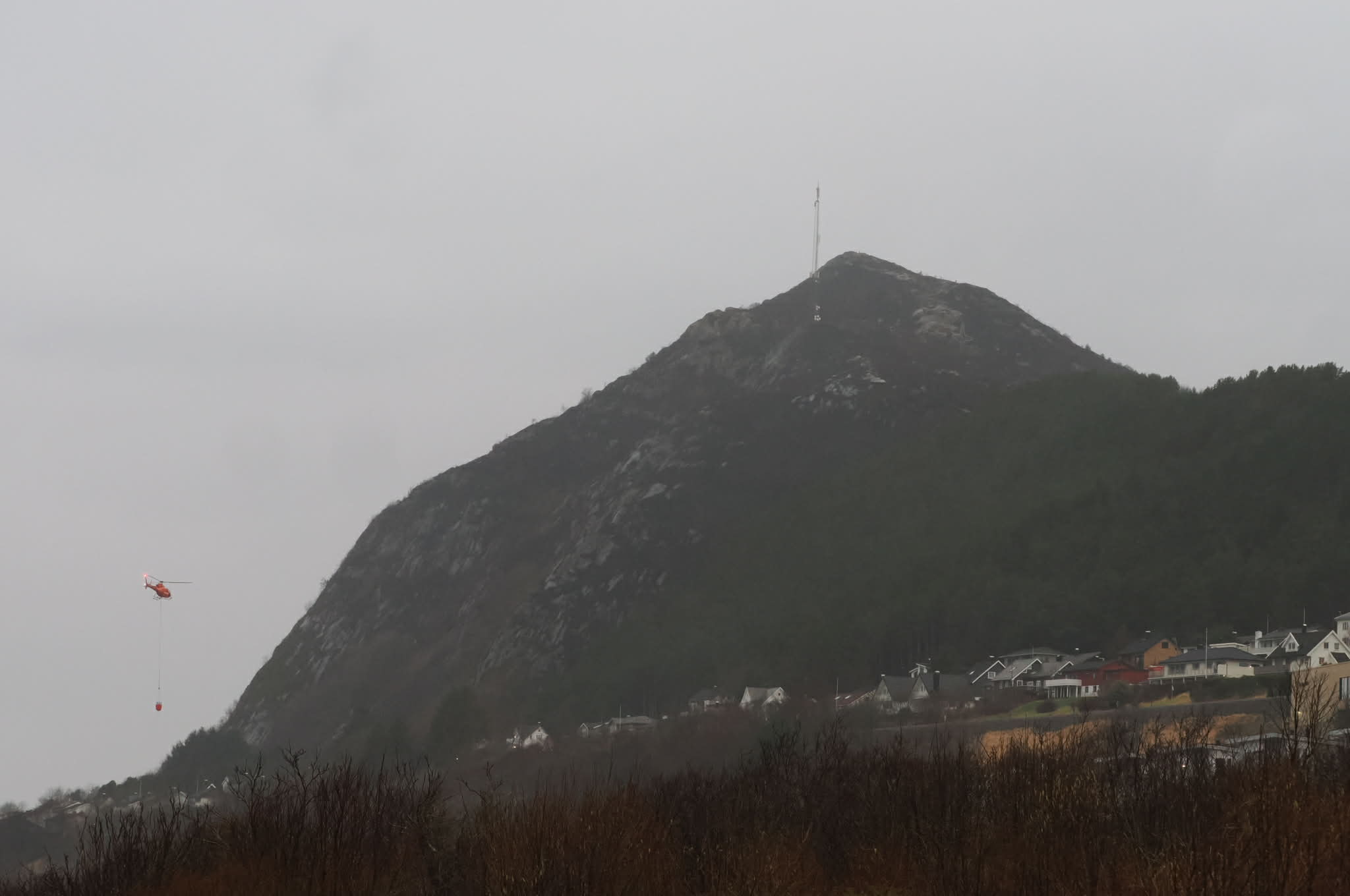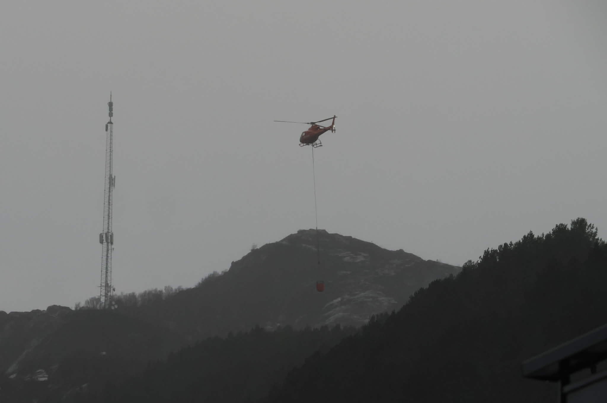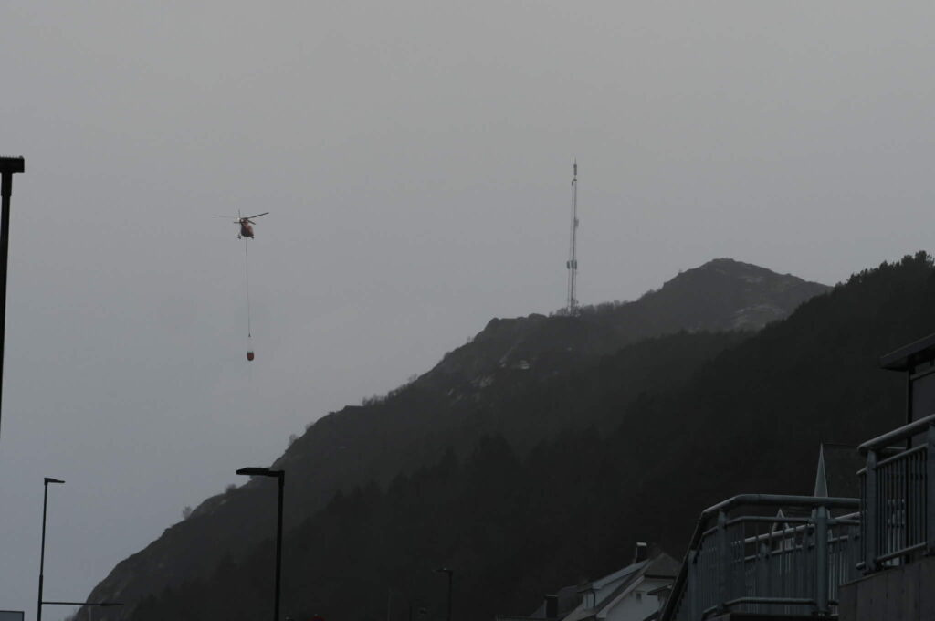 I følge vår fotograf på stedet er det nå satt inn helikopter i slukningsarbeidet.
