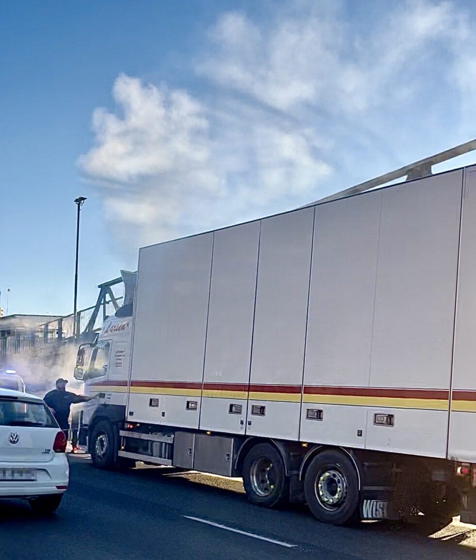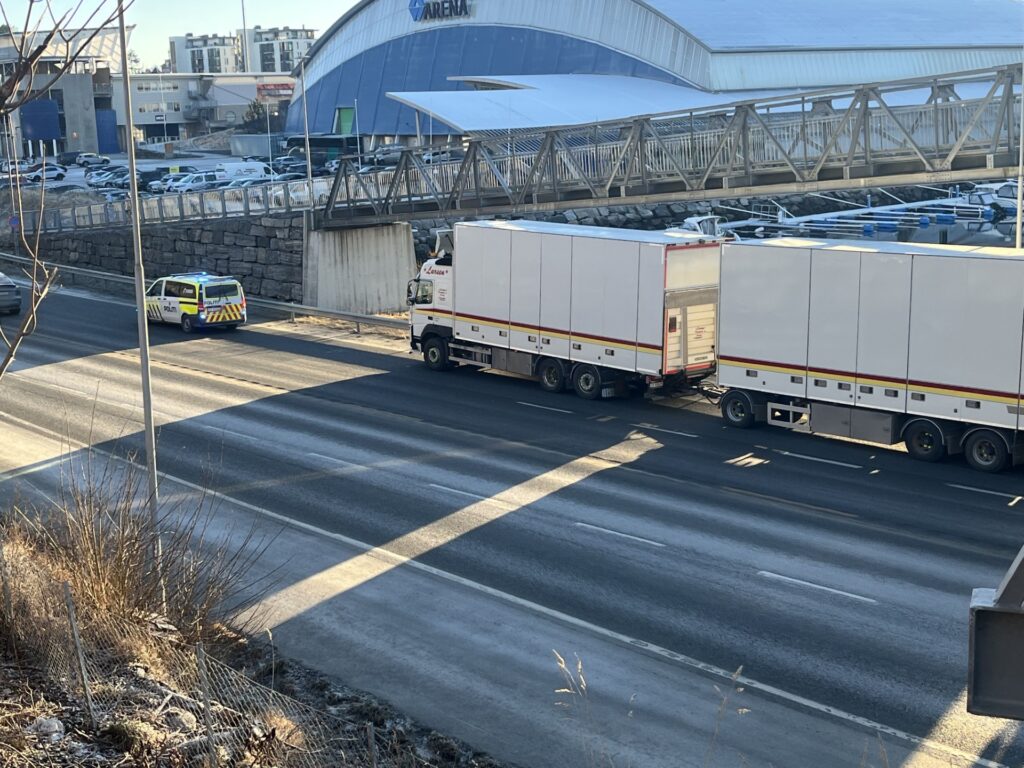 Røyk fra vogntog på innfartsvegen