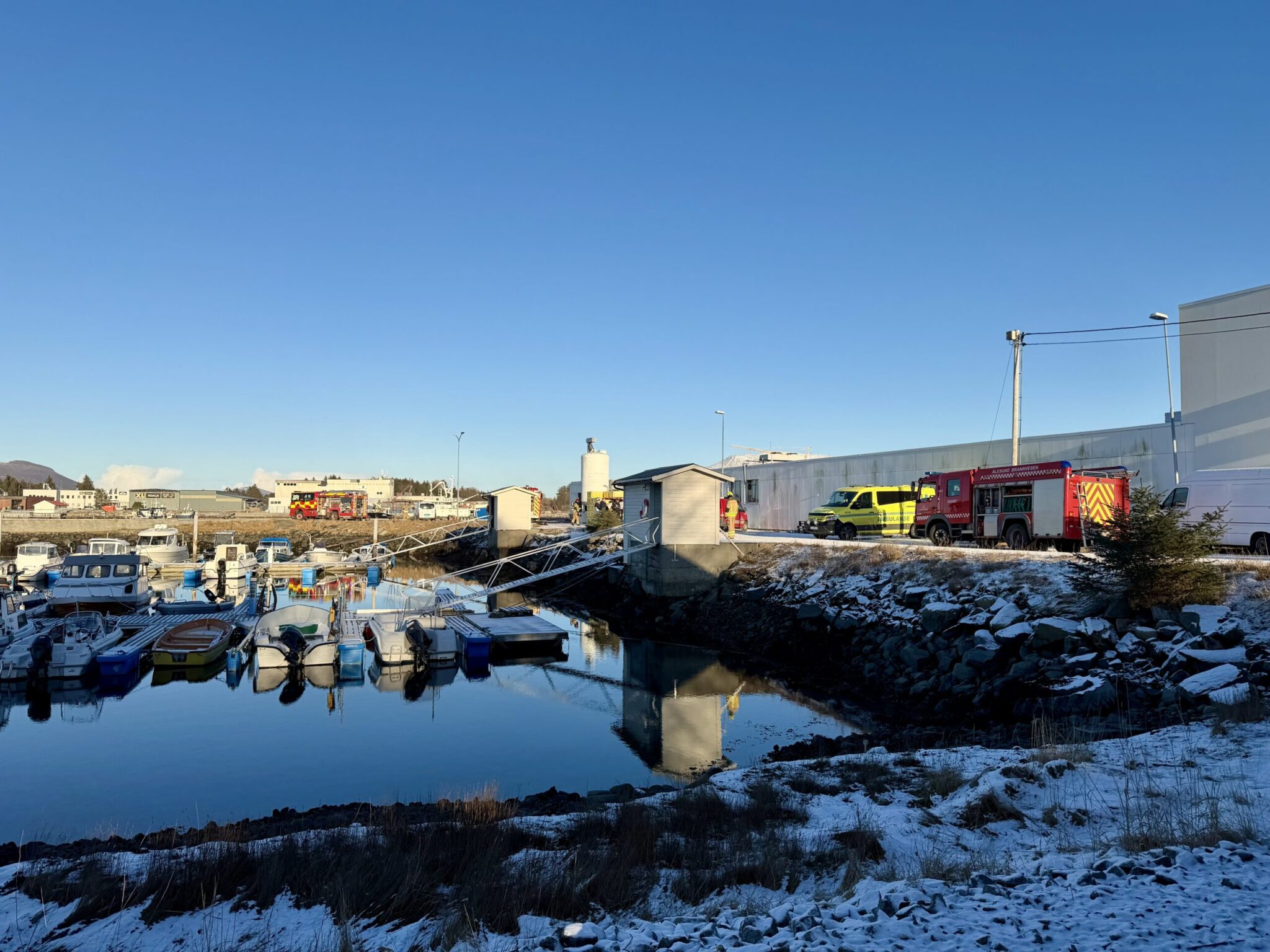 Nødetatene rykker ut etter melding om brann i en elektrisk truck på Sætra Industriområde på Giske. Det meldte politiet kl. 14.02.