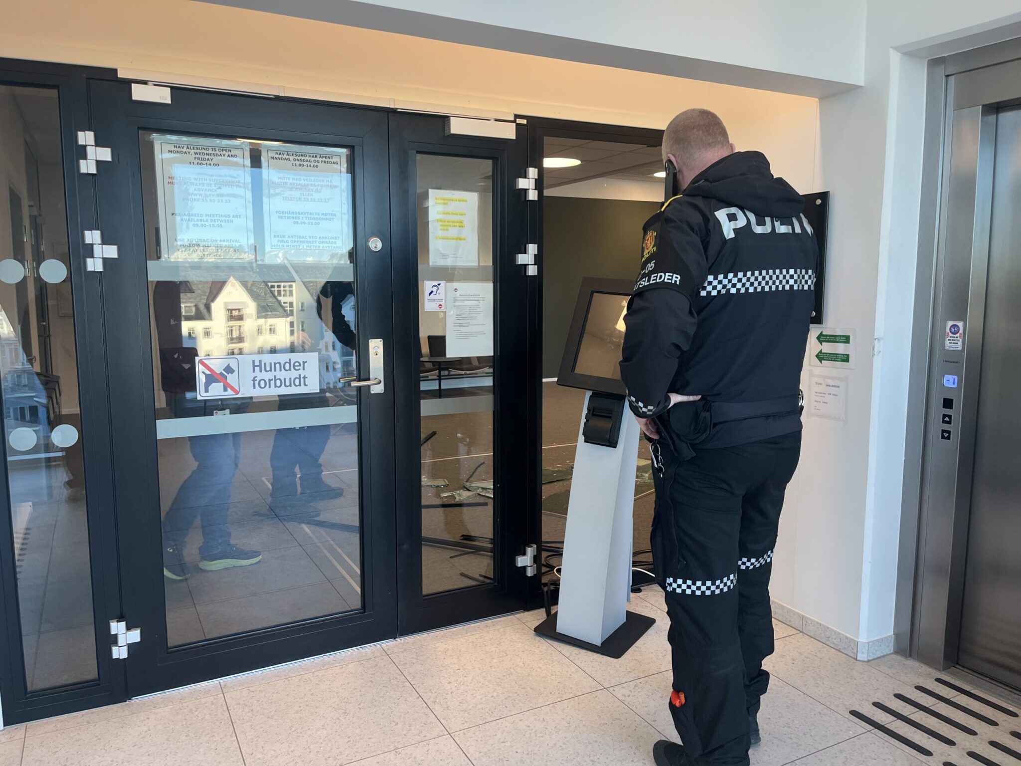 Politiet i Ålesund søkte mandag formiddag etter en mann i 30-årene. Vedkommende hadde knust en rute i inngangspartiet på Nav-kontoret i sentrum.