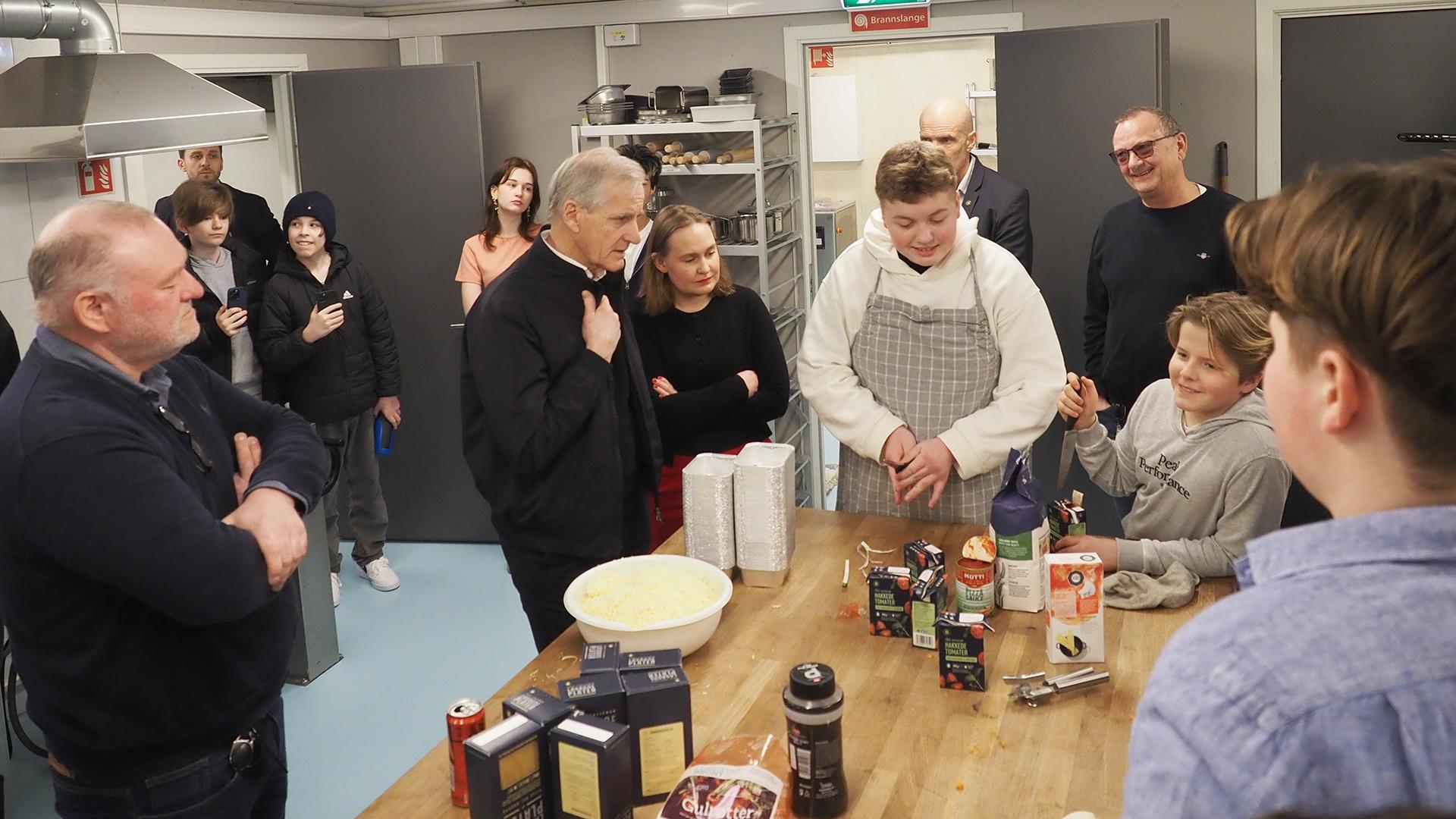 Under besøket fikk han blant annet se skolens bakeri, trykkeri og verksted, der elever på 9. trinn presenterte arbeidet de gjør i arbeidslivsfag. Flere elever benyttet også anledningen til å slå av en prat med statsministeren.