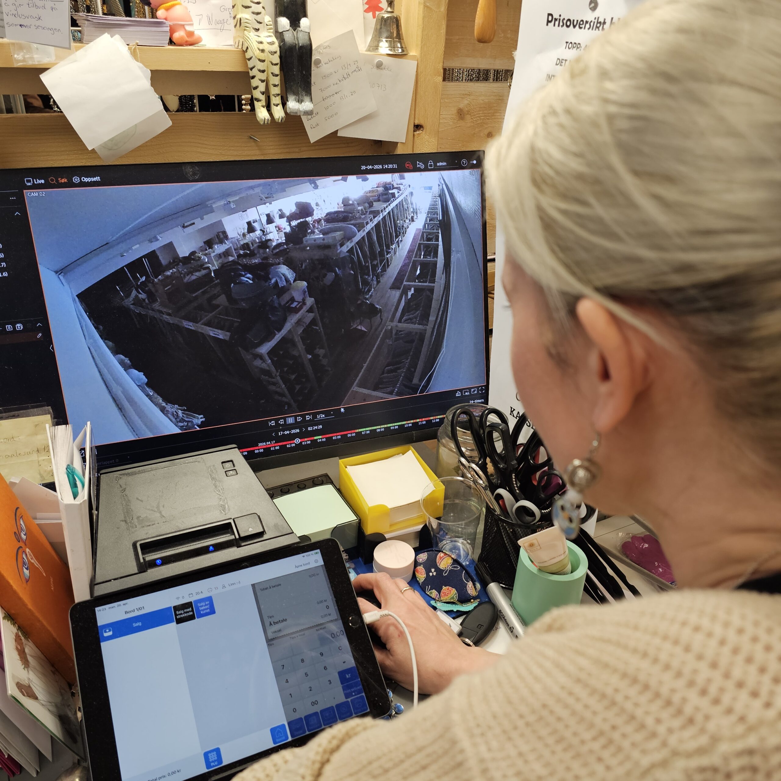 I butikken så jeg daglig leder Linn Therese Briksdal Dimmen. Hun så blid, rolig og avslappet ut. Jeg antok at det var trygt å gå inn. Men fluktruten over til sterke betjenter i fengselet på andre siden av gaten var hele tiden klar.