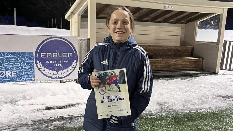 Mari Husevåg (18) i Emblem IL er kåret til Årets Tine-trener 2025 for Sunnmøre Fotballkrets, melder klubben.