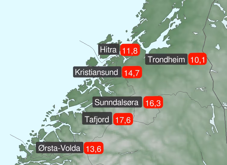 17,6 grader i Tafjord